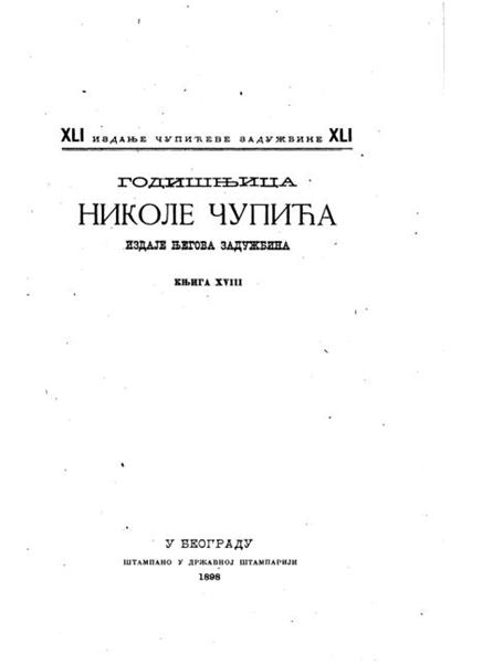 Evo vam glavna stranice knjige pod brojem XVIII stampana 1898 god.