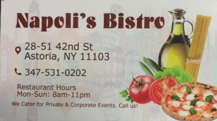 Za predstojeće VEČE DIJASPORE 2019, restoran Napoli's Bistro iz Astorije za Lutriju srećnom dobitniku poklanja VEČERU ZA DVIJE OSOBE.
