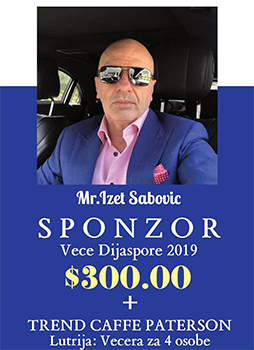IZET ŠABOVIĆ $300 + Vecera za 4 osobe u restoranu TREND CAFFE Paterson: Sponzor za Veče Dijaspore 2019 (19. novembar 2019)