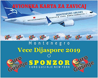 EURO GUSINJE- Povratna avionska karta; Sponzor za Veče Dijaspore 2019 - Nedelja, 8. dec, 2019. god (16. novembar 2019)