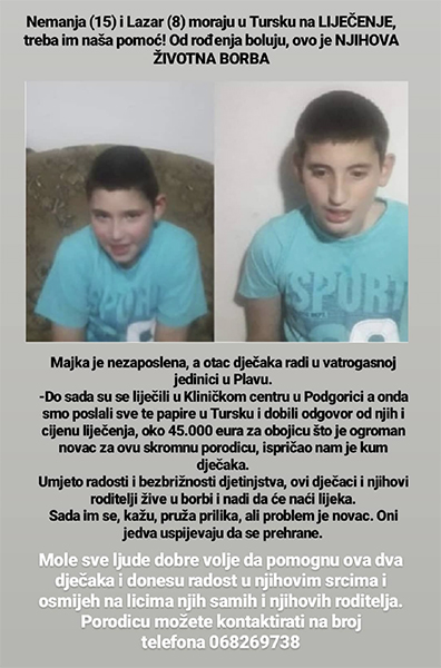 Apel za pomoc braci Novicevic iz Plava (2. decembar 2019)