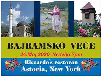 Obavještavamo članove i simpatizere da je Upravni Odbor udruženja EURO Gusinje donio odluku da zbog složene epidemološke situacije izazvane korona virusom, koji nažalost zahvatio i naš zavičaj Gusinje i Plav, da za ovu godinu otkažemo naše tradicionalne akcije: "Klanja Kurbana", kao i manifestaciju "Izbor najljepše bašte u Gusinju".  Istim povodom otkazan je i "Piknik dijaspore", koji organizujemo svakog ljeta za naše iseljenike iz Njujorka i okoline.  Nadamo se da će ova neprijatna situacija uskoro biti prevazidjena, a dotle pridržavajte se smjernica i upustava koje propisuju relevantne institucije, kako bi smo što bezbolnije izašli iz ovog stanja koje nas je zadesilo.   U ime UO EURO Gusinje   Mirzet Vukelj, predsjednik