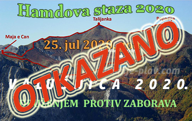 Otkazuje se ovogodišnje druženje Hamdovom stazom (deveti medjunarodni susret planinara u Grebajama)  Zbog pogoršanja epidemiološke situacije u Crnoj Gori i sire, koja je nažalost zahvatila i Gusinje  Obavještavamo vas da se ovogodišnji Deveti uspon Hamdovom stazom (zakazan za 25.jul) u organizaciji porodice rahmetli Hamda, nacionalnog parka Prokletije i Planinarskog društva “Karanfil” OTKAZUJE.  Prinuđeni smo skup otkazati kako bi zaštitili zdravlje svih uključenih u ovu manifestaciju.  U ime organizatora zahvaljujemo vam na razumjevanju i pozivamo vas da sačuvate sebe i druge kako bi bili u prilici da sljedeći susret učinimo vrijednim čekanja.  U ime organizatora Planinarsko društvo “Karanfil” Gusinje