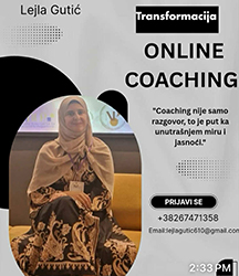 Zovem se Lejla Gutić. Autorica sam knjige „Život vrijedan življenje“ i kreatorka istoimenog YouTube kanala. Danas vam se želim predstaviti i kao coach za lični razvoj. Prije svega, zahvalna sam Allahu na uputi i na tome što mi je podario priliku da živim svoju misiju. Moj poziv je da ženama na životnoj prekretnici pružim siguran prostor da rade na sebi, pronađu unutrašnje zadovoljstvo i snagu koju materijalno ne može nadomjestiti. Vjerujem da isto razmišljanje koje nas je dovelo do mjesta na kojem jesmo ne može odvesti tamo gdje želimo biti. Zato coaching vidim kao putovanje koje radimo zajedno – vi ulažete u sebe, a ja vas pratim, slušam i podržavam. Najveća nagrada za mene je gledati transformaciju žene koja ponovo otkriva svoj mir i svrhu. Ukoliko želite da radite sa mnom, možete mi se javiti putem e-maila: lejlagutic610@gmail.com. ili na tel:+38267471358
