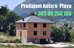Lokacija: Jezerska ulica br.27 Plav  Cijena: €195.000 - Spavaćih soba: 4 - Kupatila: 1 - WC: 1 - Hodnik: 1 - Unutrašnje stepenice.  Stambena površina: 130m2. Zemljište: 400m2  Prizemlje i sprat. U prizemlju dnevna soba i kuhinja, tehnička soba za centralno grijanje, hodnik i WC. Na spratu ima 3 spavaće sobe i kupatilo. Centralno grijanje razvedeno, 2 terase sa pogledom na Plavsko jezero.   Udaljeno od centra Plava 300m. Udaljenost od splava 200 m  Gradjevinska dozvola izdata.  Kontakt: Viber / WhatsApp  + 382 63 295093  + 382 63 23 7788