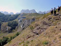 - Pozdravljam sve prisutne planinare iz Hrvatske, Slovenije, BiH, Kosova, Srbije, te planinare klubova Crne Gore, rodbinu , gradjane Gusinja i Plava i druge prisutne. Dobro dosli na planinarski pohod na Prokletije, odnosno vrhove Popadije, Talijanke i Volusnice. Nalazimo se u dolini Grebaja koja je na oko 1150 mnv jedna od najljepsih dolina smjestena ispod ostrih vrhova i litica divljih i divnih Prokletija. Danas cemo ici jednom od najljepsih planinskih staza, koja je svim grupama planinara, koje imaju namjeru duze da ostanu na Prokletijama staza za zagrijavanje. Ova staza vodi umjereno strmo, stalno navise kroz visoku bukovu sumu do raskrsnice od koje se jedan krak odvaja prema Karauli a drugi nastavlja prometnom stazom za katun Valusnica, dodirujuci klisuru Valusnickog potoka. Nesto dalje kroz krzljavu sumu izbijamo na otvoreni prostor katuna Valusnice. Na zapadnom rubu je granicni greben i na njemu stozasti vrh Popadija pa dalje istim grebenom do vrha Talijanke. Proci cemo i pored praistoriske ploce na kojoj se nalaze crtezi iz tog vremena. S ovih vrhova je predivan pogled na veliki dio Prokletija,pocevsi od gorskog velikana Karanfila, Stijene Koplje—600mv. Visestepeni kuleori Dilinog katuna, stijena Tuznog vrha. Odatle je veoma razvidan lednickom erozijom i veoma razudjen prostor-Krosnje ocnjaka i Karanfila ljuljasevica, a isto tako i reljef albanskog dijela ovog podrucja do vrha Maljie e Snikut.