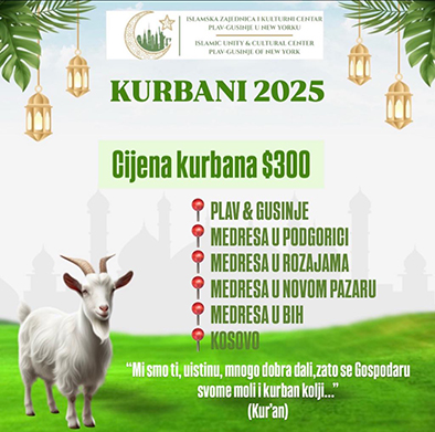 U ponedeljak, 13. oktobra, 2025. godine u New Jersey (SAD) je na Ahiret preselio MRKULIĆ (Julja) ESAD, u 64-oj godini života. Zdravoglava će se održati u Ali-pašinoj džamiji u Astoriji, danas - u utorak, 14. oktobra 2025. godine od 4pm do 11pm. Dženaza će se obaviti u rodnom Gusinju, a o terminu ćemo vas naknadno obavijestiti. Ožalošćeni: supruga Merima, sin Mirza, snaha Hatixhe, unučad Hannah, Zara, Hamza i Zayn, kćerka Mersiha, zet Halil Haxhaj, unučad Lana i Lorena, sestre: Veza i Jasmina, brat Halim, bratstvo Mrkulić, Safet Pjetrović sa porodicom, Faruk Muminović sa porodicom, porodice Haxhaj i Lubani, ostala mnogobrojna rodbina i prijatelji. Inna lillahi wa inna ilayhi raji’un. Svi smo Allahovi i Allahu dž.š. se vraćamo.(www.gusinje-plav.com)