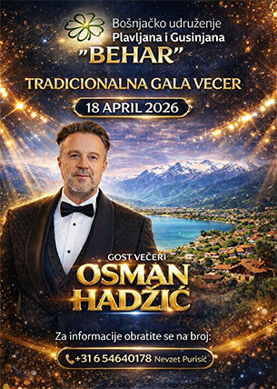 Bošnjačko udruženje Plavljana i Gusinjana BEHAR - Tradicionalna gala večer: 18. april, 2026.  (31.3.2026.)