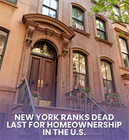 Za mnoge Njujorčane, posjedovanje doma i dalje se čini kao daleka prekretnica. Novi izvještaj koji analizira podatke Zavoda za popis stanovništva SAD-a rangira New York na posljednje mjesto u zemlji po vlasništvu nad nekretninama, ističući koliko je država postala preopterećena podstanarima i skupa.  Na mjestima poput Zapadne Virginije, više od 80% stanovnika posjeduje svoje domove. Ovdje u New Yorku, rastuće cijene, ograničene zalihe i prihodi koji ne mogu pratiti taj trend znače da Njujorčani troše do 70% svojih prihoda na stanovanje, a štednja za početnu uplatu traje više od 20 godina. Nije ni čudo što renta i dalje pobjeduje. (NBC.com)
